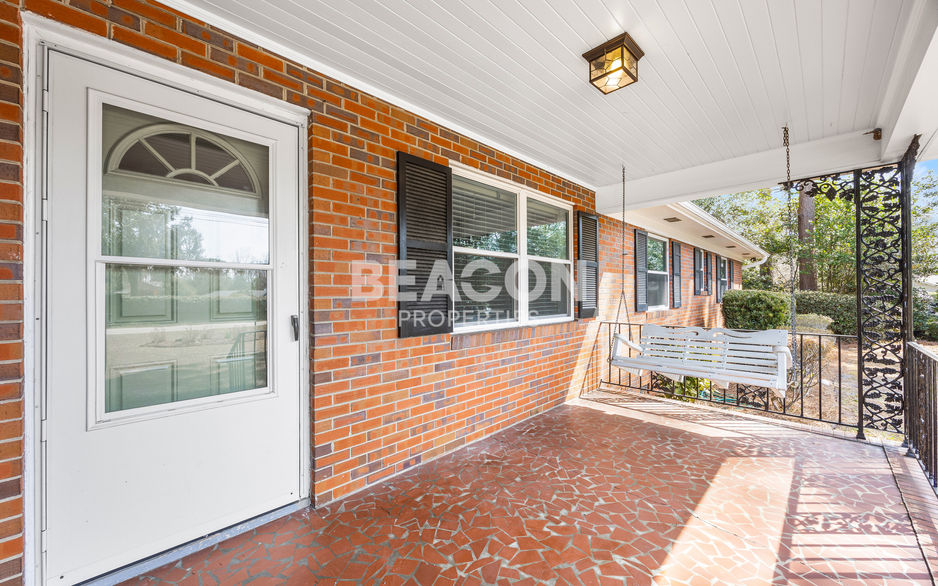 Rare find in the heart of Midtown Wilmington! This charming one-level brick ranch sits on a spacious, wooded 0.47-acre lot and offers the perfect blend of classic character and modern updates. A covered front porch, perfectly sized for a porch swing, sets the tone for the inviting interior, where gleaming wood flooring flows through the living room, den, and all three bedrooms. The living room features a chair rail and flows seamlessly into the dining area, accented with wainscoting, LVP flooring, and open to the kitchen. Designed both for style and function, the kitchen showcases stainless steel appliances, granite countertops, a breakfast bar, tile backsplash, recessed lighting, LVP flooring, and an abundance of crisp white cabinetry. A cozy den or family room features wainscoting, crown molding, and sliding glass doors that lead to a screened-in back porch with ceiling fan, perfect for relaxing or entertaining while overlooking the private backyard. The owner's suite includes a private bath with a modern vanity and tile step-in shower. Two additional bedrooms share a well-appointed guest bathroom with a double quartz vanity, LVP flooring, and linen closet. Outdoors, the expansive fenced backyard offers privacy and versatility, complete with a storage shed, fence, and mature trees. You will have ample room to garden, play, or expand, the choice is yours! Updated light fixtures throughout add a fresh touch and polished appeal. Ideally located just minutes from dining, shopping, medical facilities, and a short drive to area beaches, this charming home delivers comfort, elegance, and an unbeatable Midtown lifestyle. Start living your dream!